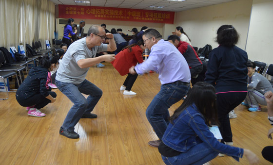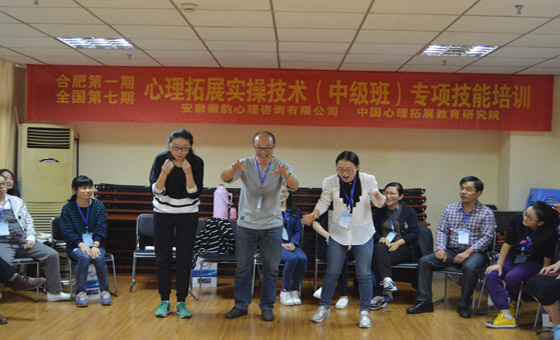 10月15、16日,国庆小长假后的第一个周末,有幸参加了由徽韵心理机构组织的“心理拓展实操技术培训”,授课老师是资深的专业从事团体心理素质拓展训练16年、有上千场团体心理拓展培训活动带领经验的罗家永老师。两天的课程,活动一个接着一个,从活动热身体验到活动操作解析,从八大类心理拓展游戏活动实施要点展示到小组成员动手操作编排、演练,在二天一夜的紧张学习中,四十位学员见证了罗老师将拓展训练与校园团体心理健康教育有机融合的深厚功力,感慨于罗老师在心理拓展领域中的卓越实践和在心理拓展工具开发方面的创新引领。在学习过程中,不管是活动的解析还是活动后分享者的引导升华,看着罗老师,脑海中总会不断的闪现出多年之前那次拓展训练老师微微一笑对我说的话:我在哪儿见过你。似曾相识的画面,似曾相同的声音,那是一个优秀的拓展老师所共有的心理特征:温暖可信赖,陪伴成长,助人自助,激发他人潜能,在他人心中种下一颗正能量的种子,引领着他人自我超越与自我实现。罗老师身体力行的践行着心理拓展培训领域的传播与引领。