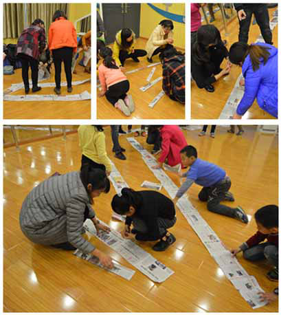 最后的“无敌风火轮”活动,家长与孩子集思广益,合理分工,亲手制作本队伍的无敌风火轮。当脆弱的报纸化作坚硬的履带,带动全队成员风火前行时,每个组别,每个家庭合着音乐的节拍,踏出幸福、快乐的步伐,这一刻亲子之间的爱与呵护充盈着所有人的内心。