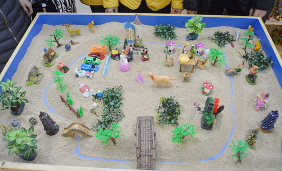 在团体沙盘的主体活动中,老师们仿佛回到了童年的天真时光。一捧细沙,一个玩具,一片天地······释放自己的情绪,创作集体的家园,投射最真实的内心自我。或许生活的烦扰,工作的压力,我们渐渐远离了理想的那一片舒适园林,但无论如何,柔软的心底始终保留着一方净土,安放着对生活、对自我的一份美好追求。适时地让自己静下来,慢下来,学会用心去感受周遭的一切变化,去体验自己内心的感受。