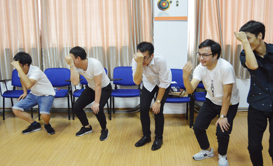 小时候,我们开心就笑,难过就哭,生气了就大闹一场。日子一天天过,我们都渐渐的成长为一个不动声色的大人了,不准自己情绪化,也不准自己偷偷想念,一直往前走,不许自己回头看。于是胡老师偷偷带来了时光机,让这些大朋友们穿越时空,回到简单纯真的小时候。拍拍操、孙悟空、穿越呼啦圈、动力圈…..一个又一个串联的小游戏,让学员们体会到小时候最纯真的快乐,也让学员们感受到这一路走来、一直站在自己身边的伙伴们的温暖和力量。