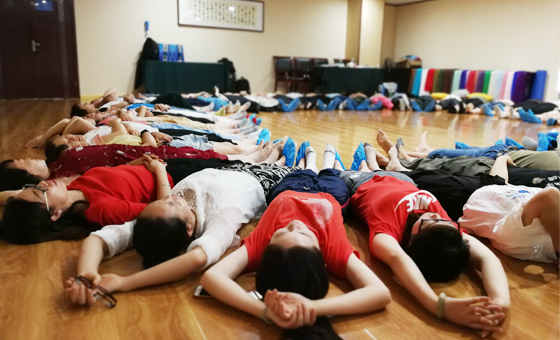 古典心理剧演出是心理剧的重头戏。经历了暖身与选角,心理剧的演出议题也呼之欲出。暖黄的灯光照拂在身上,温情的歌声回荡在耳边,同伴的拥抱跟臂膀让几经破碎的心渐渐有力。此情此景下,我们或动容落泪、或陷入自己的回忆。不禁让人感叹泪水洗礼过后的眼神是如此坚定澄澈,脸庞又是那样的舒展平和。五彩的丝带在人群上空轻盈起舞,生命在此时此刻被无比珍重跟温柔对待。主角爱恨交织的复杂情感以及百转千回的心理活动在演出中被淋漓尽致地表现出来,张老师极富感染力的导演功底以及辅角与观众全身心的投入成全了一场穿梭时光的心灵之旅。