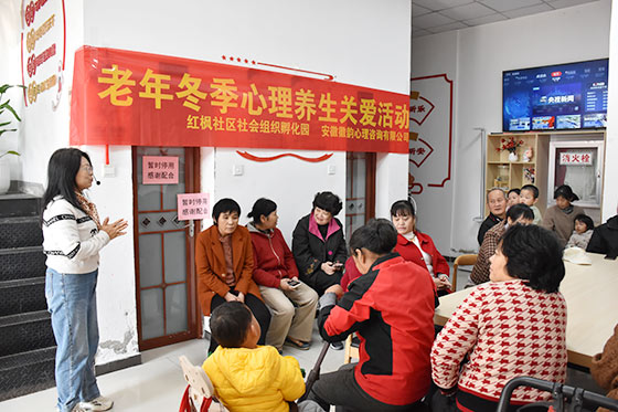 为关爱社区老年人心理健康,2025年11月11日上午,由红枫社区社会组织孵化园主办、安徽徽韵心理咨询有限公司承办的“老年冬季心理养生关爱活动”顺利开展,活动特邀国家三级心理咨询师陈天笑老师带领,吸引了20余位社区老人参与。