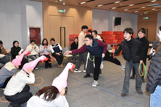 国风投壶区里,职工们屏气凝神、抬手投壶,在传统游戏中感受国风之趣,每一次精准投中都引来阵阵喝彩;套大鹅区域人气爆棚,大家瞄准目标、果断出手,带着满满的期待抛出套圈,收获惊喜与欢乐;极速飞盘环节,职工们奔跑传递、默契配合,在飞盘的旋转与接抛中释放活力,一扫工作疲惫;赶马入栏游戏考验着大家的手眼协调与技巧,大家手持道具小心翼翼引导“小马”入栏,互帮互助、其乐融融。整个活动过程中,职工们放下工作的忙碌,全身心投入到趣味闯关中,彼此加油鼓劲、分享喜悦,每闯过一关收获的印章,都凝聚着快乐与成就感,现场处处洋溢着团结奋进、欢乐祥和的新春气息。